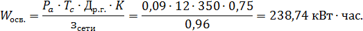Общие расходы электроэнергии на освещение (сумма всех полученных данных по формуле (11.4)):