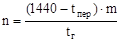 где tпер – суммарное время технологических перерывов в работе горки, 60 мин; m – число вагонов в составе.