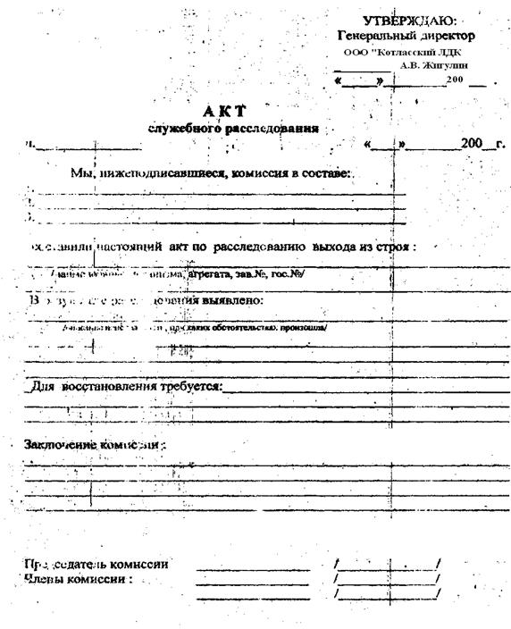 Рис. 21. Акт служебного расследования выхода из строя агрегата