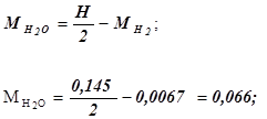Количество компонентов продуктов сгорания, кмоль/кг